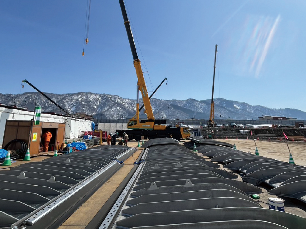 赤川二期 農業水利事業 赤川頭首工ゲート設備 製作据付建設工事 据付工事 北上川上流廿木地区築堤外工事 据付工 |
